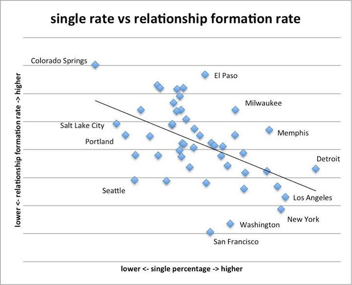 « In a city where everyone is paired up, the incentive to pair up is even stronger, while cities like New York and Miami are places that people go to be single ». (via Looking for Love)