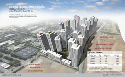 « The booming tech industry has created huge demand for housing in the San Francisco Bay Area, driving up housing costs and leading to long commutes. Meanwhile, tech workers flock to San Francisco and Oakland, seeking the high-density urban environment that Silicon Valley lacks. What might it look like if tech campuses replaced their parking lots and provided all the necessary housing on-site? » (via Tech Campus Housing Studies)