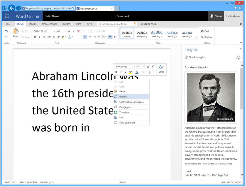 « Insights for Office is different. It can use the words from your entire document (or also those you select) to pinpoint exactly what you are looking for. With the help of this context, we are able to rank the most relevant result at the top ».